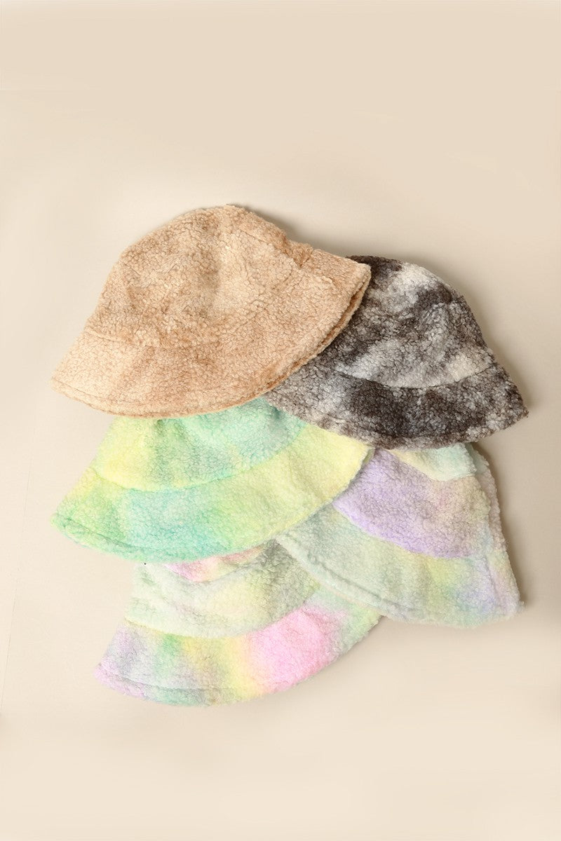 Winter Tie Dye Teddy Sherpa Bucket Hat