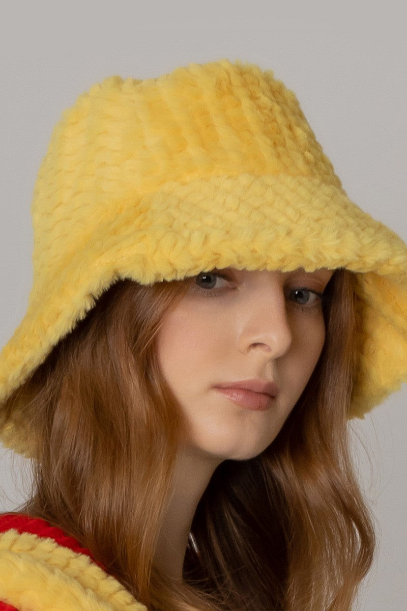 Winter Solid Color Fuzzy Fur Bucket Hat