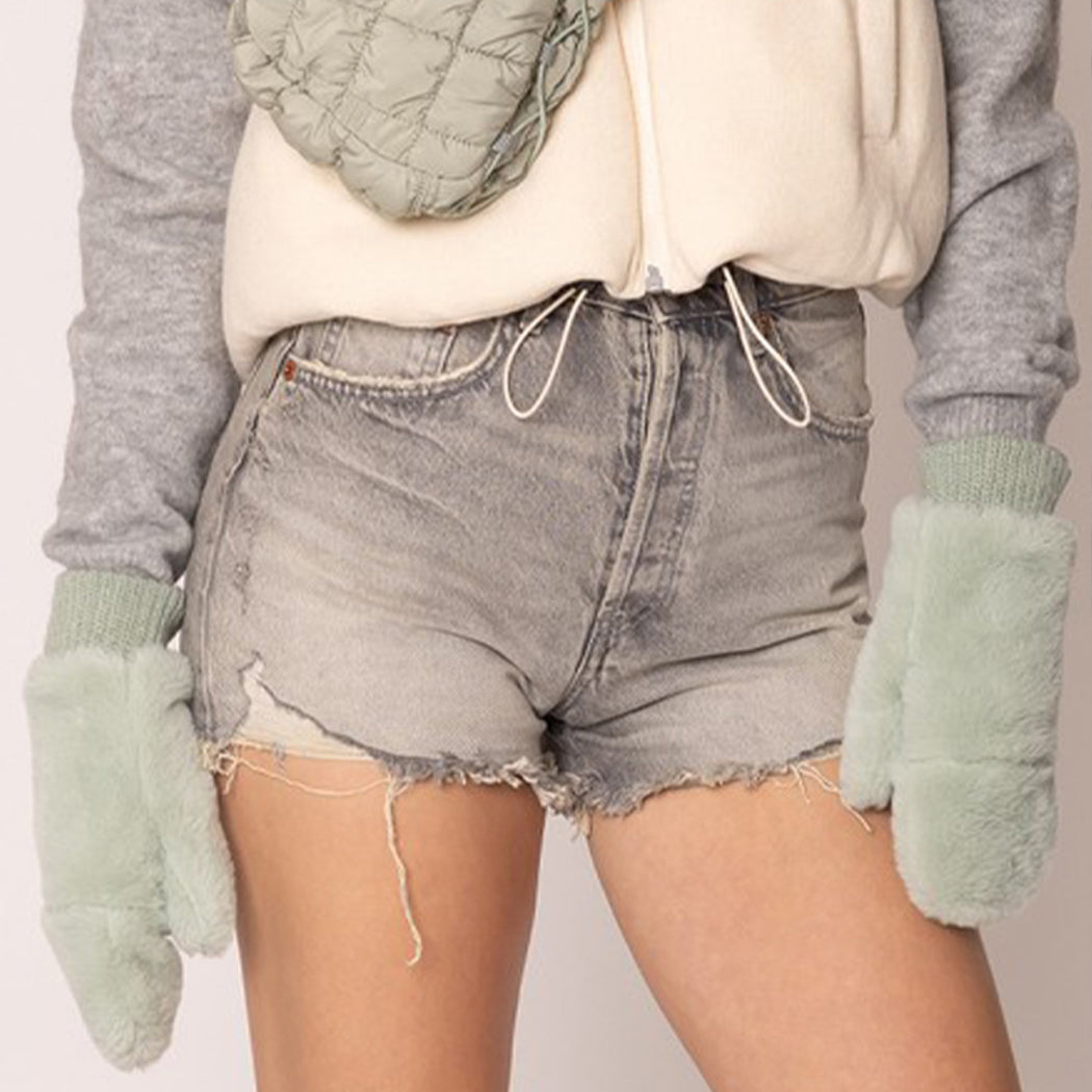 Women Snow cozy Mittens Gloves with Gathered Wrist