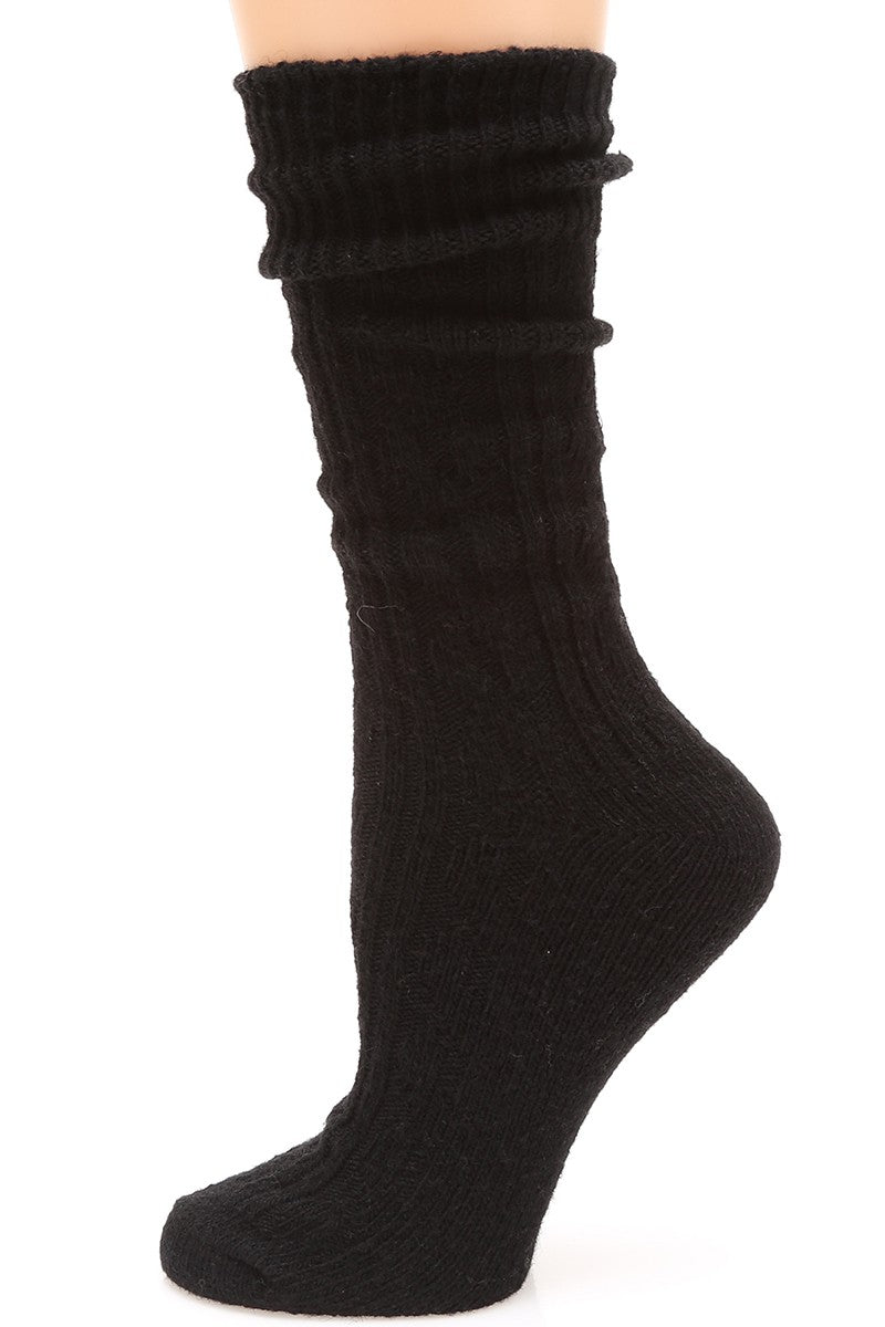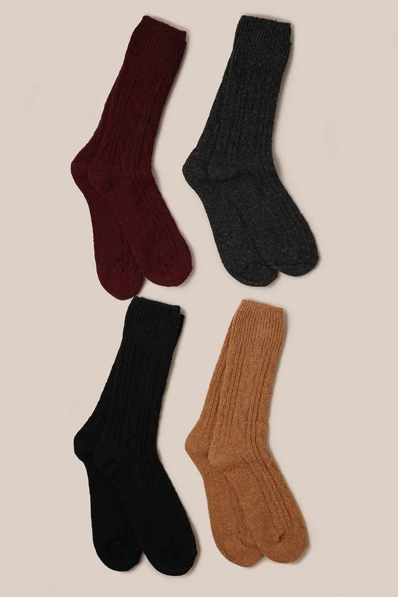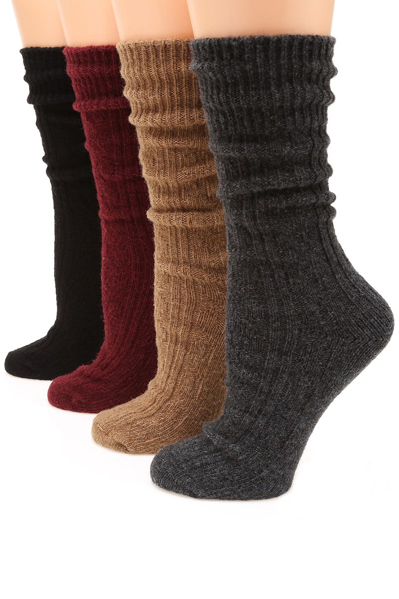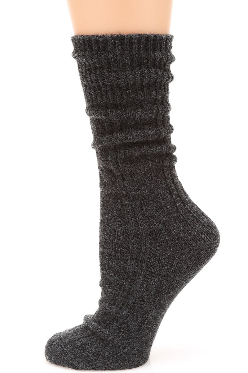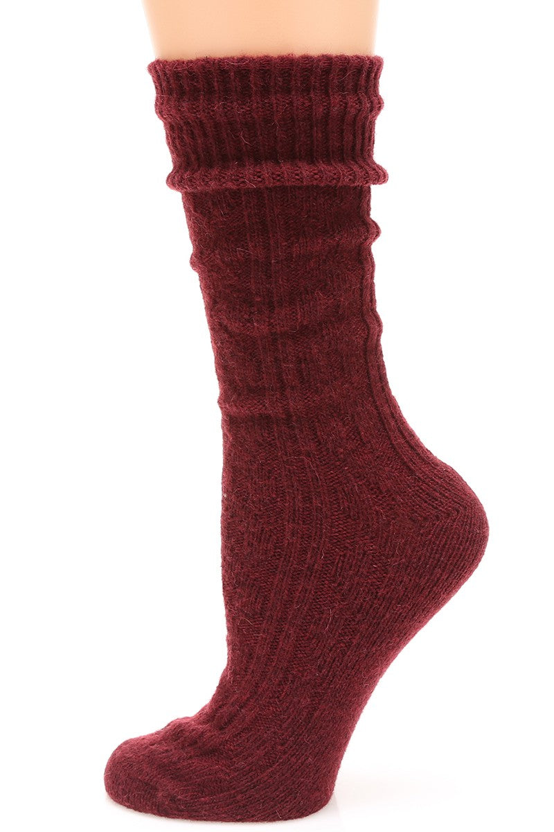 Women's Rib Knitted Wool Blend Crew Socks.