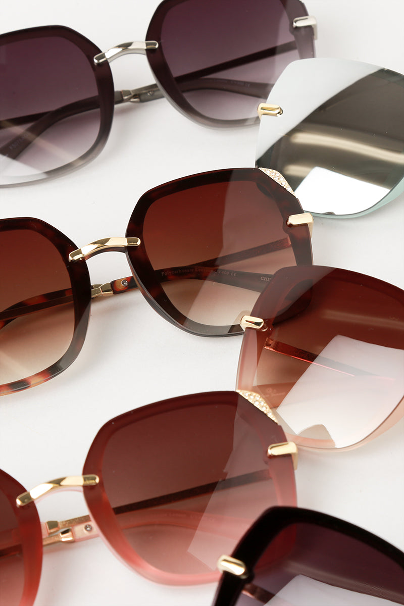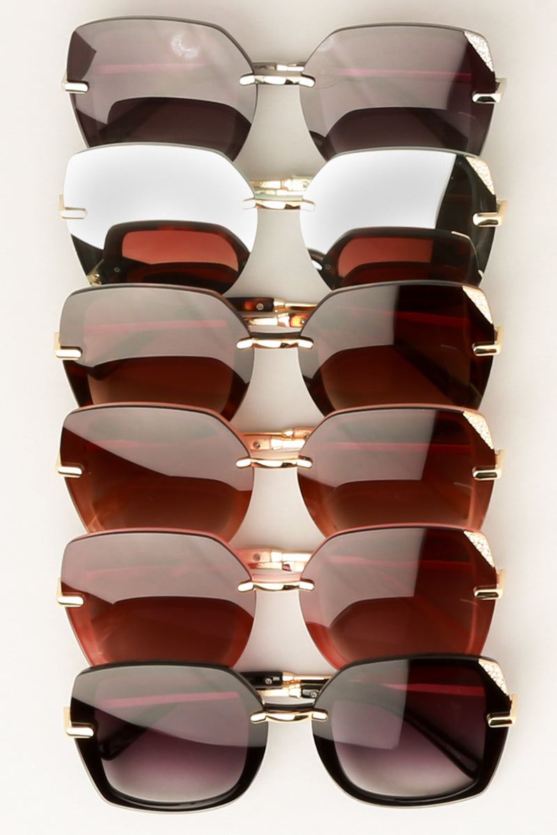 Women's Rimless Assorted Tinted Lenses Sunglasses